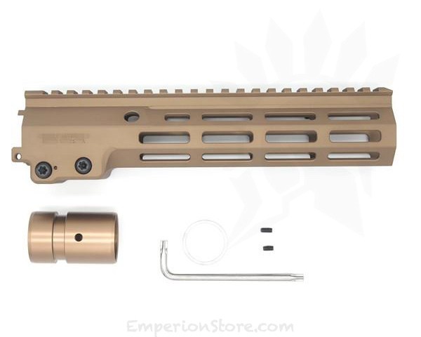 It works with standard M-LOK compatible accessories. Installation while straight forward, a technician is recommended for assistance during installation.