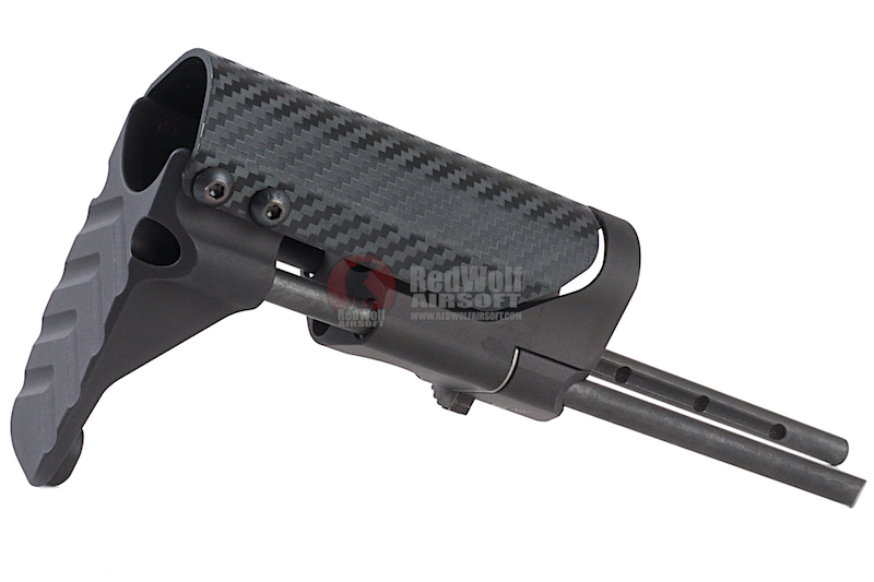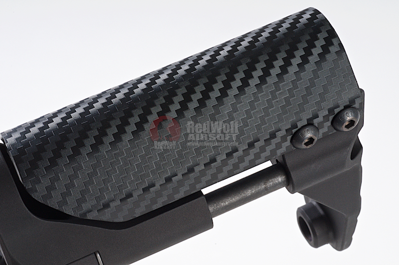 The carbon fiber style kydex cheek rest makes the VERT Stock light, strong and comfortable to use. Very easy to remove and change, all it requires is a allon key. Robust engineering aluminium buttstock which is ergonomically designed for comfort and features a built-in, limited rotation QD point. The stock can be adjusted to 4 stock locking positions, when its fully Collapsed it’ll be around 4.75″ long where as fully extended can reach upto 8.75″ long (measured from rear of receiver).