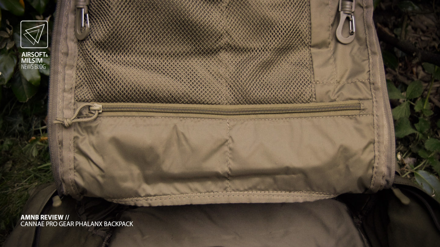 Before we get into the main compartment, it is worth showing that there are two main forms of entry. The most used version will be the two way YKK zipper behind the helmet carry pouch which you can having been used to access the main compartment in the below image. However, there is also a quick access from above which is betwwen the shoulder straps and the carry handle at the top of the backpack. This access will allow for items to quickly be taken out or stashed in the backpack without exposing other items within the backpack. This is a very clever use of function for this backpack especially since this has proven very useful where a second user can quickly dump items into the main user’s backpack without the main user needing to take the pack off their backs.