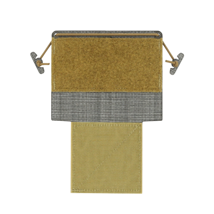 The Chesty ATAK Panel is a simple and secure way to integrate an ATAK device to the chest area of the Chesty Rig platform. The panel is constructed from a laser-cut thermoplastic and can be formed to user preference. Installation is simple with a hook and loop Velcro sandwich and elastic shock cord anchors.