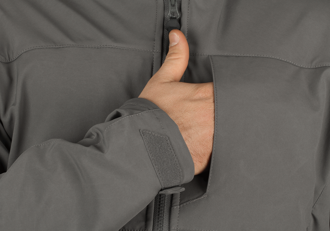 Rapax is an extremely breathable and uncompromising light build with low stowage volume for a wide range of tactical applications as well as everyday carry. The seam-free shoulder area eases rucksack carriage without pressure points and prevents intrusion of wetness. Wind deflector prevents cold air to get inside through the zipper. Adjustable waist adjustment straps provide a close-fitting and functional waist design. Designed for medium temperature ranges, but can well be combined with a warm layer for temperatures below freezing.
