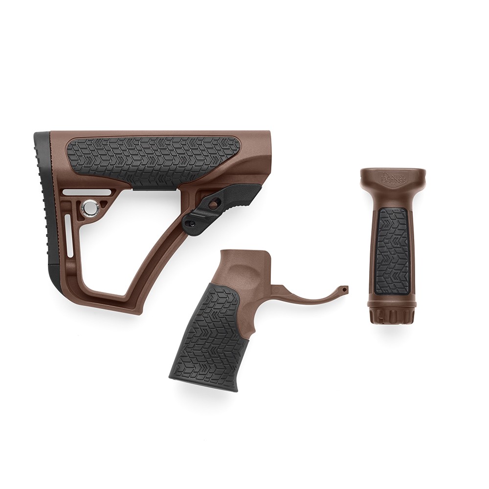 The new Daniel Defense pistol grip is an improvement to the old standby A2. We designed our grip with ergonomics and controllability in mind. Our grip shares the angle of the classic 1911 pistol for the most natural hand position and comfortable feel. This pistol grip incorporates an oversized trigger guard covering the gap between grip and lower receiver which can wear on the shooters hand and easily accommodates for gloves. Installation is simplified by the fact the integral trigger guard doesn’t require a roll pin so there is a reduced chance of damaging the lower receiver. A soft touch overmolding section enhances grip, wet or dry.