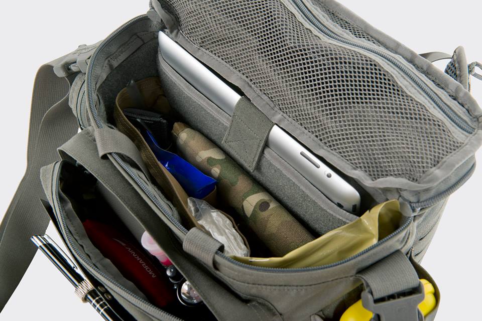 Main compartment is lined with Velcro loops which allow adding some extra equipment, like holsters or magazine pouches. Special pocket inside main compartment keeps your tablet or other electronic devices protected. Main flap is closed with two way YKK® zipper. The Foxtrot Waist Bag also features two front pockets closed with zipper, and two small side pockets – one cargo pocket and one water bottle pocket. Shockcord on top allows strapping additional equipment like raingear.