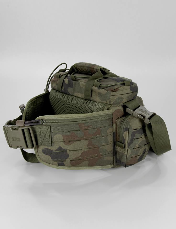 The Foxtrot Waist Bag features laser-cut modular system compatible with MOLLE/PALS. Side panels of the bag features zipped pockets for flat objects like maps or documents. Panels can be folded into dedicated pocket in order to transform the bag into a small handheld or shoulder bag. Made of durable 500D Cordura® nylon fabric with water resistant coating.
