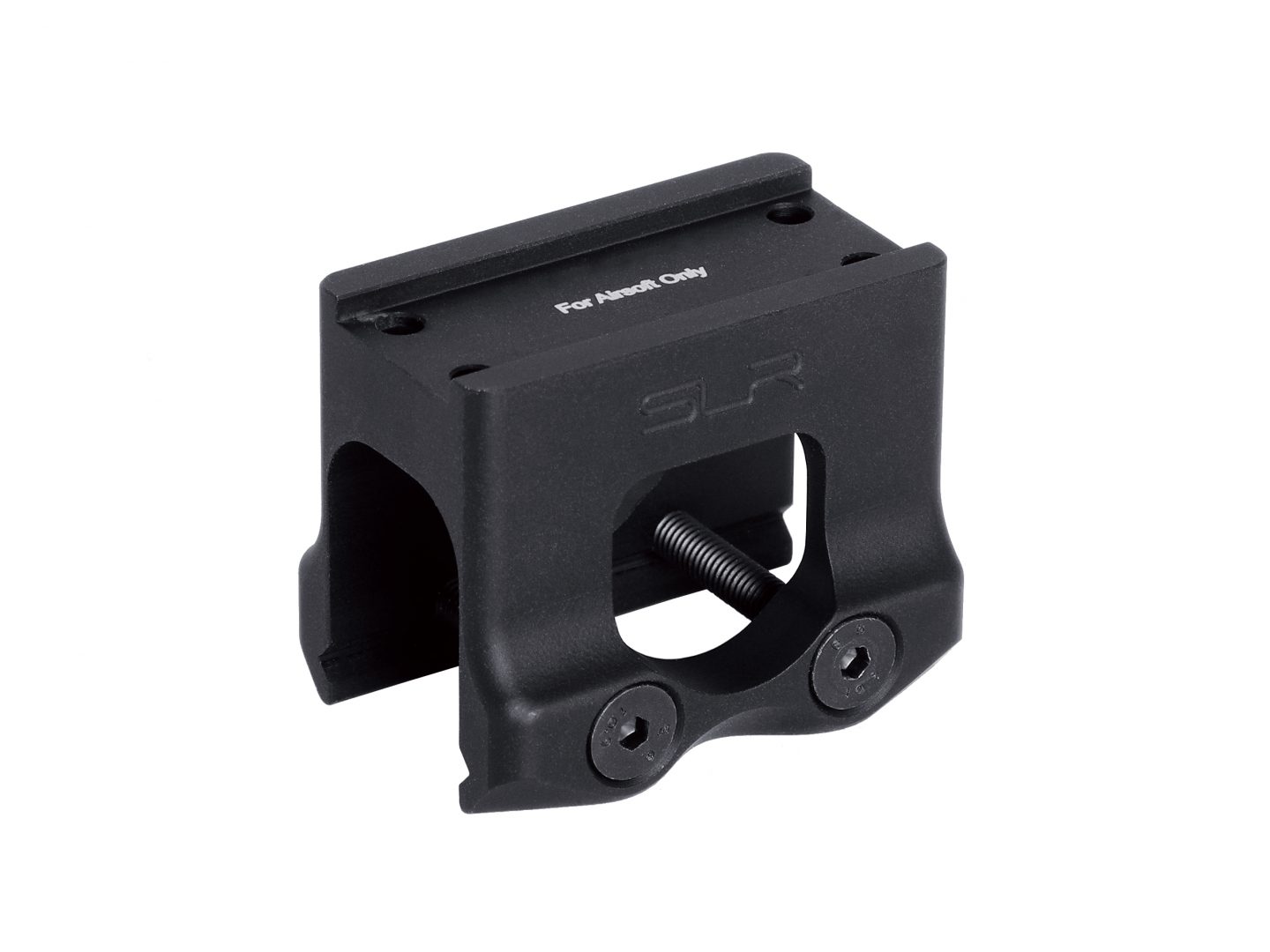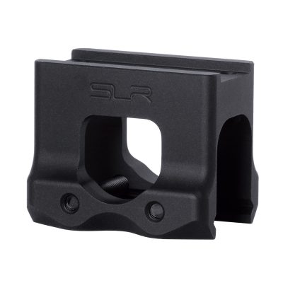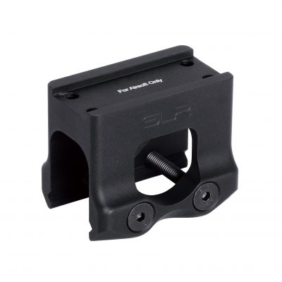 The SLR Airsoftworks Lower 1/3 Co-Witness T1 Mount is a T1/T2 mount utilising two screws to clamp down onto a firearm’s picatinny rail. The term “Lower 1/3 Co-Witness” mean that the iron sights will sit on the lower 1/3 of the optic. The mount is finished by CNC.