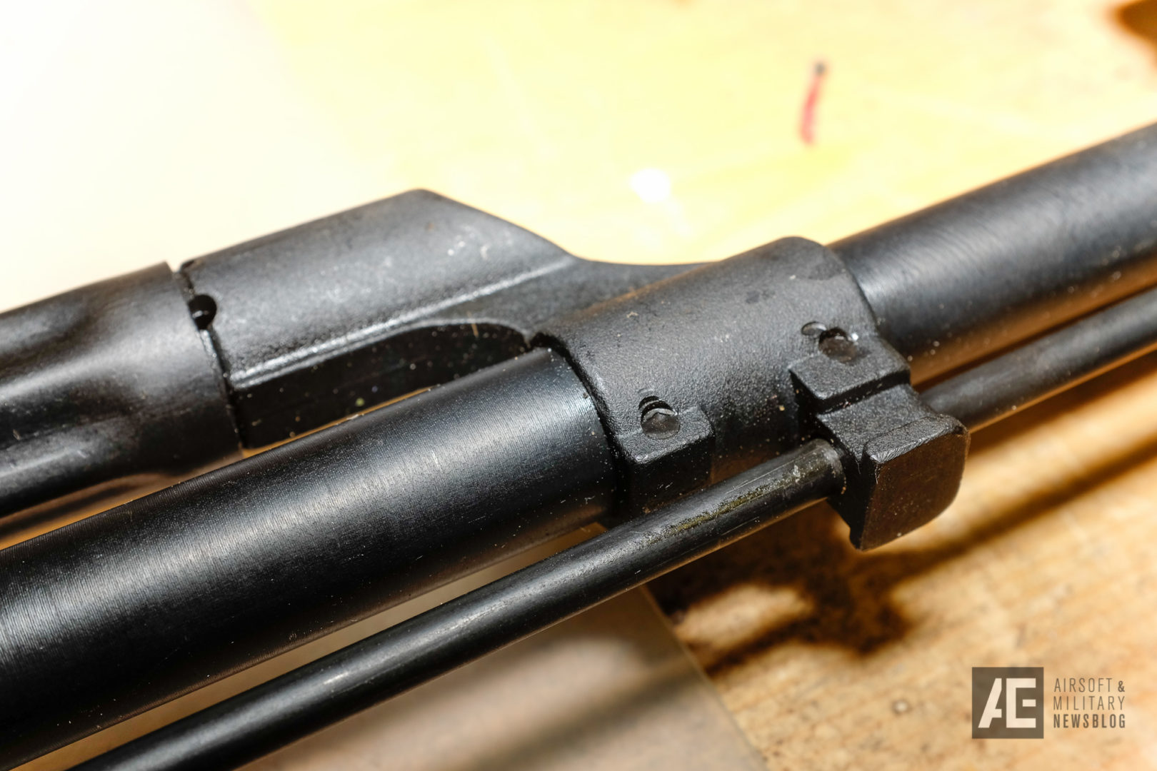 The upper handguard has also a big slot cut into. Maybe for the same legal reasons as on the barrel. The material feels very thin on this one. I wouldn’t want to shoot this gas tube on a real AKM tough.