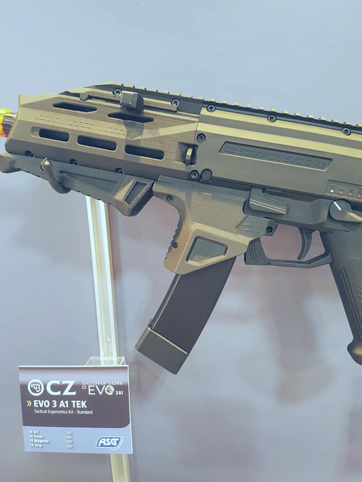 Designed by ASG, The TEK kit features a new handguard with Mlok. An angled front grip and extended Magwel. The kit will be available as a complete EVO, but also as a separate kit and each part is sold separately as well.