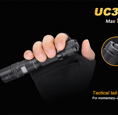 The Fenix UC35 rechargeable flashlight combines high intensity with reliable Micro-USB charging and it’s compatible with various batteries. Tactical tail switch offers momentary-on and side switch for output selection. With an optimized beam pattern, the UC35 offers six outputs including strobe mode to cover from daily use to outdoor and professional use.