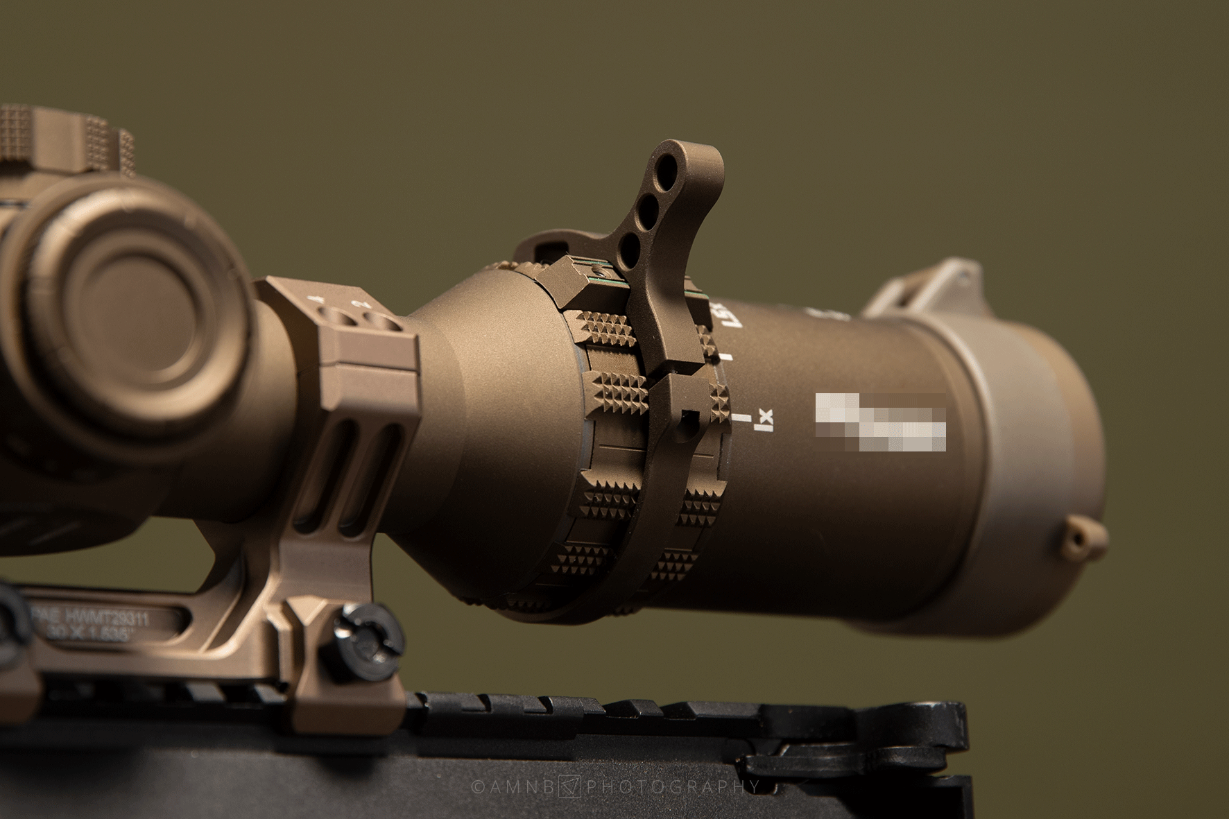 The HWO-TGO TANGO6T offers all the adjustment features like the real deal does. Diopter control, elevation & windage turrets, brightness adjuster, a power steering lever and doubling handwheel and a quick adjusting ring to access the 1-6X magnification how you need it in like no time.