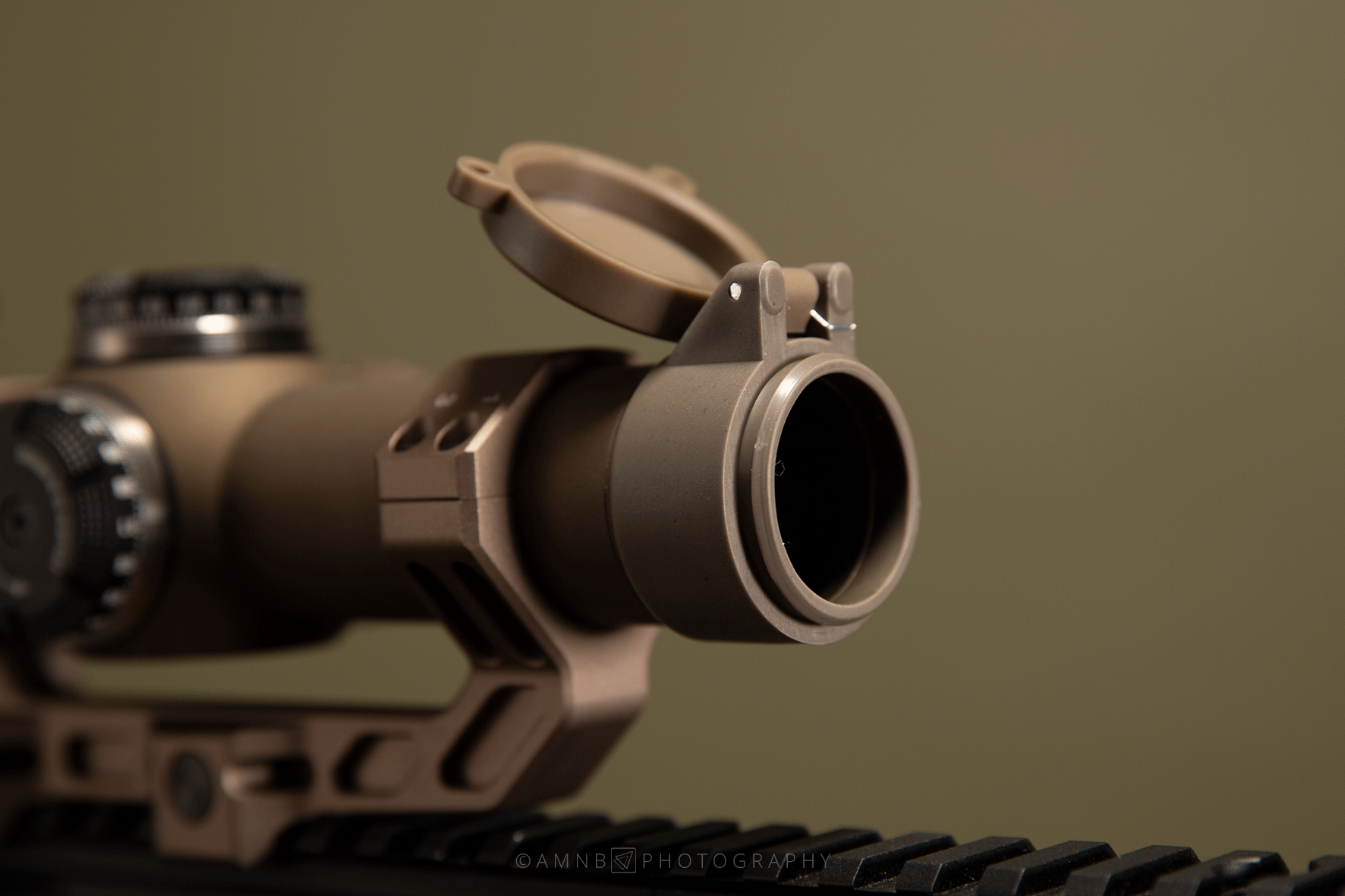 The elevation & windage turrets are well covered with caps to keep dust and/or dirt out of it. An O-Ring and the end of the thread makes sure that the whole turret is well sealed once the cap is set in place.