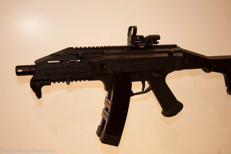 The fully licensed ASG CZ EVO Scorpion SMG AEG is made with High-Polymer and firing Single, Burst and Fullauto. If its out of BBs it stops firing. It has an Bolt-Action function with an Bolt-Release. Also a nice feature ist the Qick-Spring Release System. To preventing damage on Internals theres an Electronic Unit inside which shut down the gun if the battery runs low or a Gearbox failure is detected. Releasedate is soon!