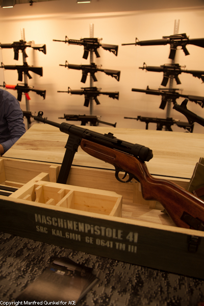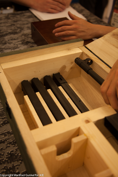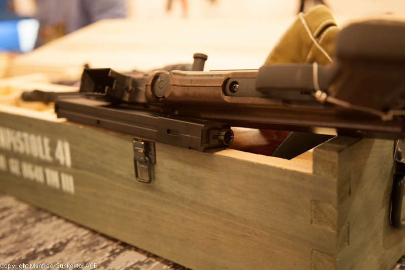 SRC Airsoft presented this year at the IWA their new MP41 (SR-41): The 100 piece Limited Edition comes in a wooden gun case. Beside the gun there are included 4 magazines, 1 sling and 2 magatzine pouches. SRC MP41 (SR-41)