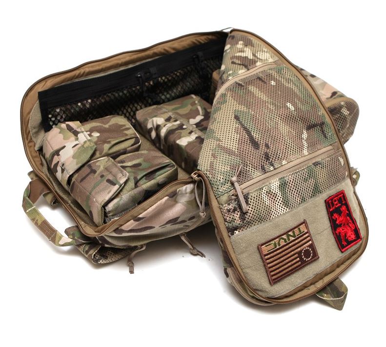 - 2 mesh zippered pockets line the front internal panel along w/ loop above and below for call signs/patch storage