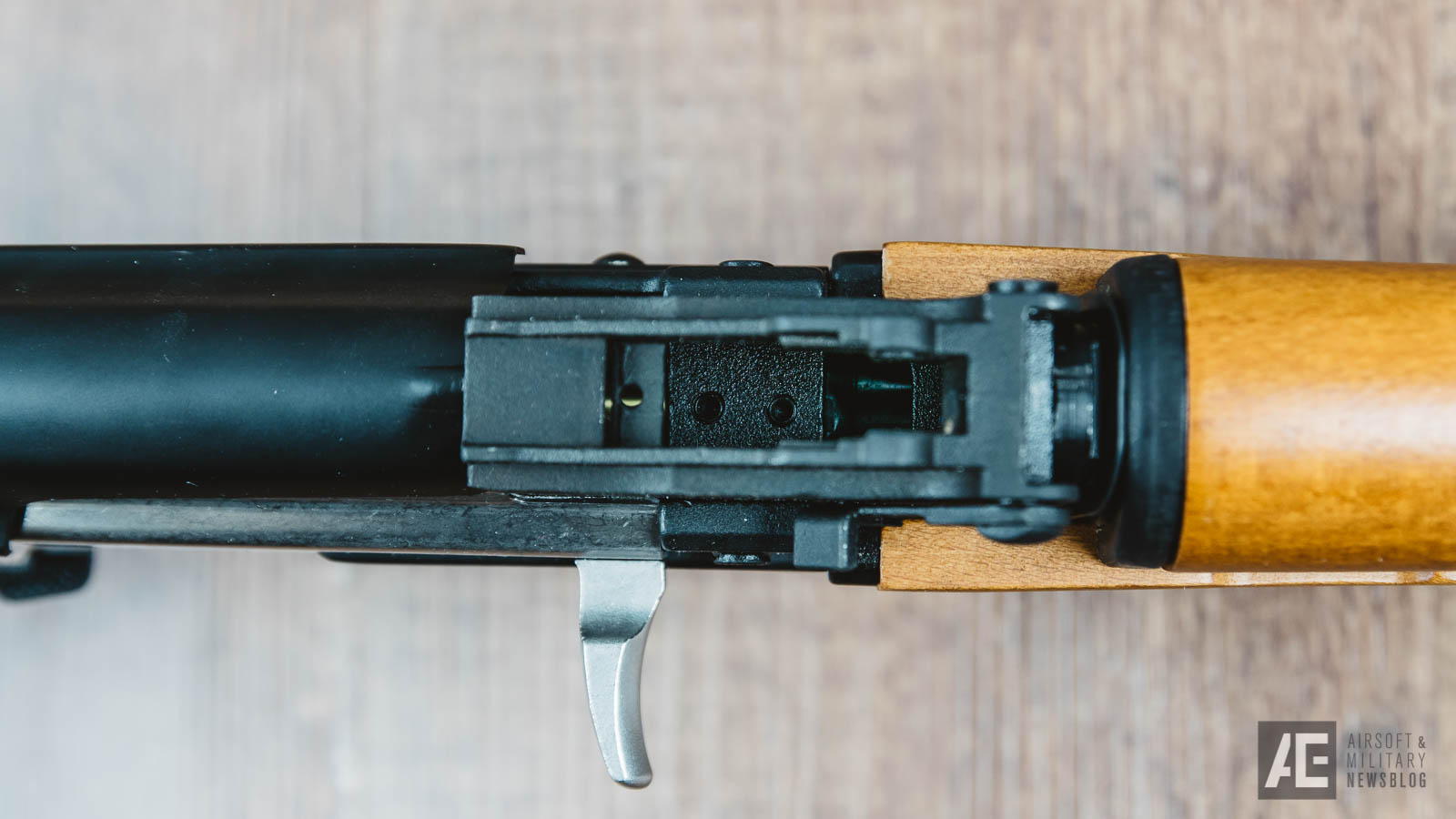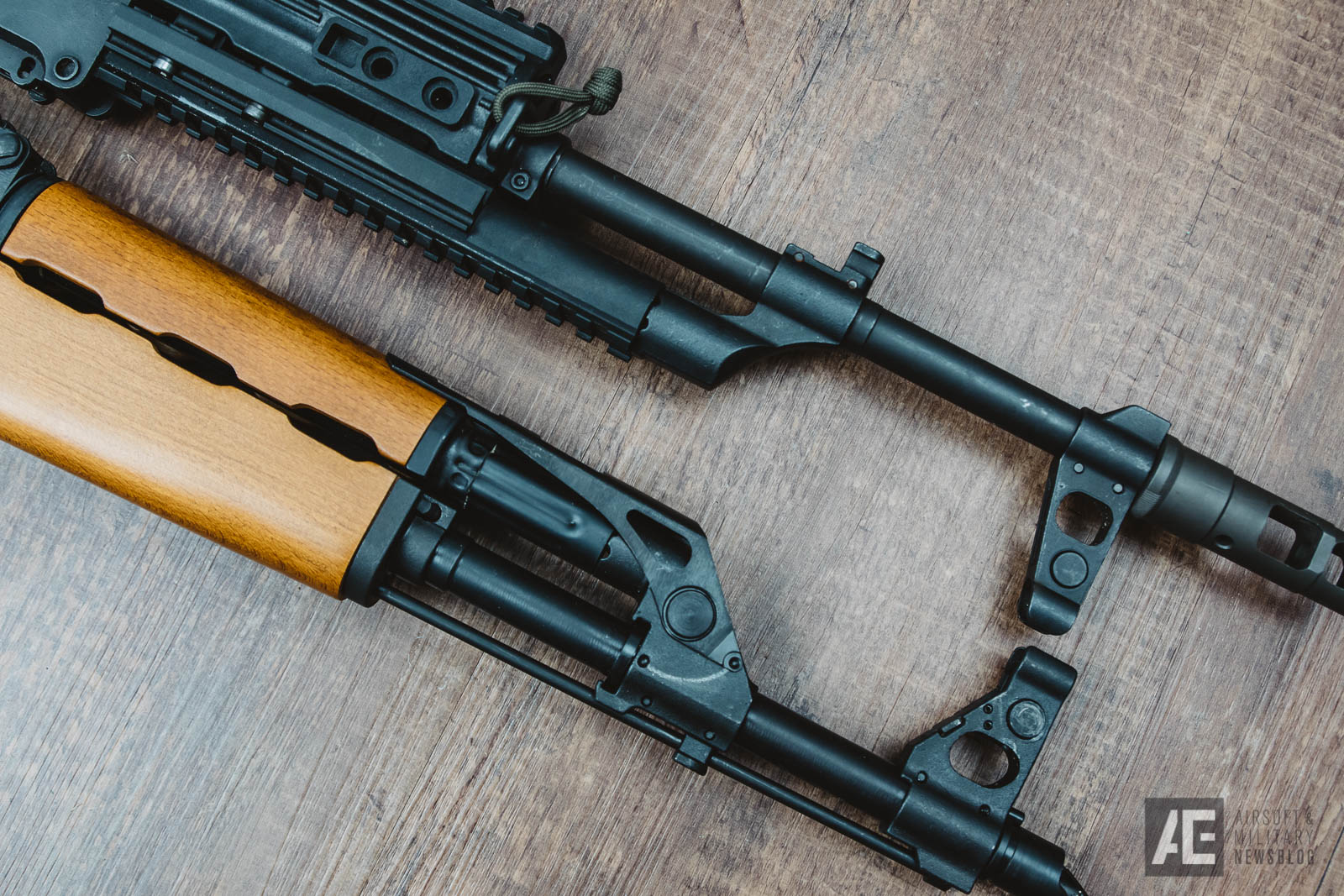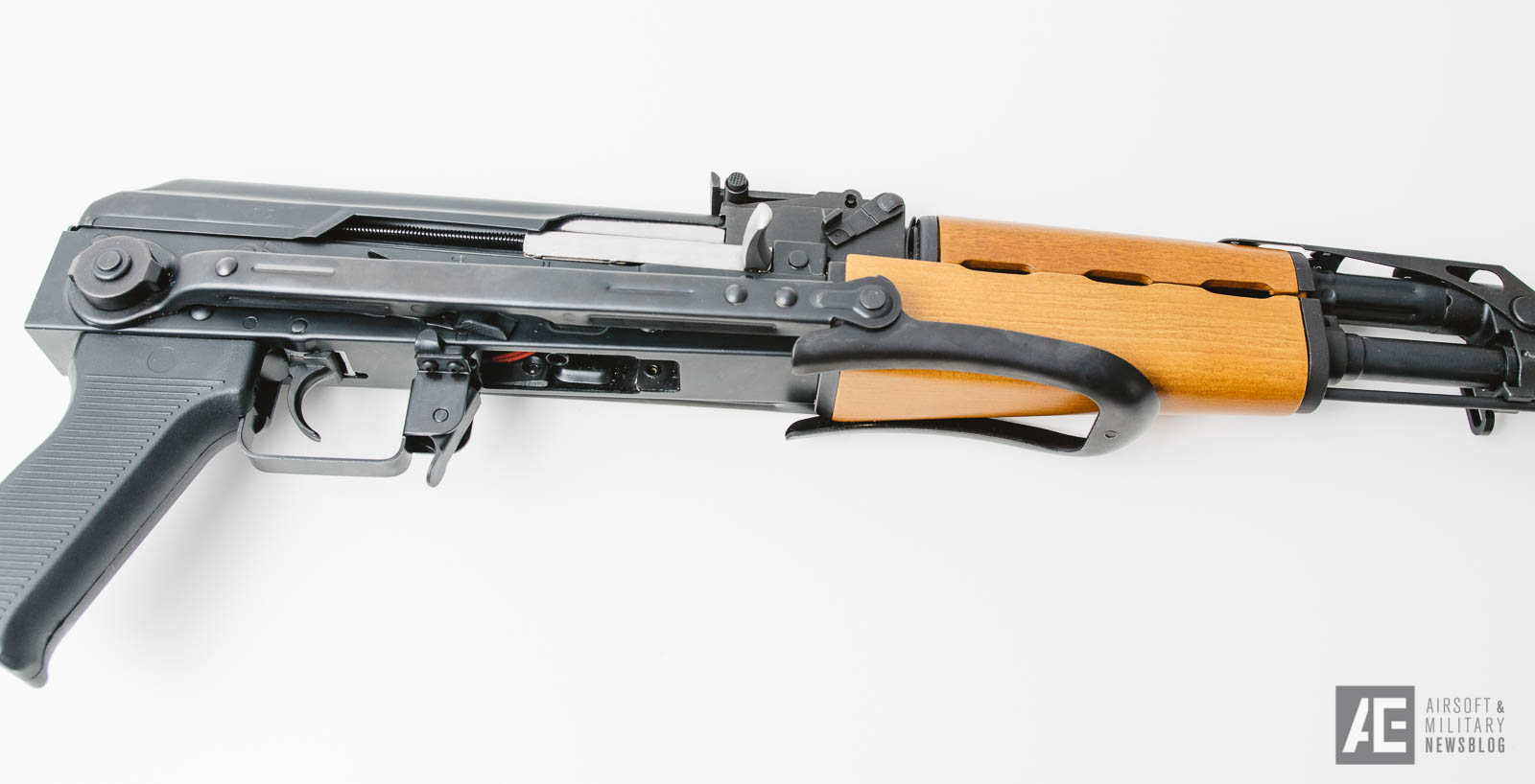 Auffälligste Unterschiede zur AKMS sind der Handguard, der Gas Block und der Receiver, der optisch stark dem einer RPK ähnelt.
