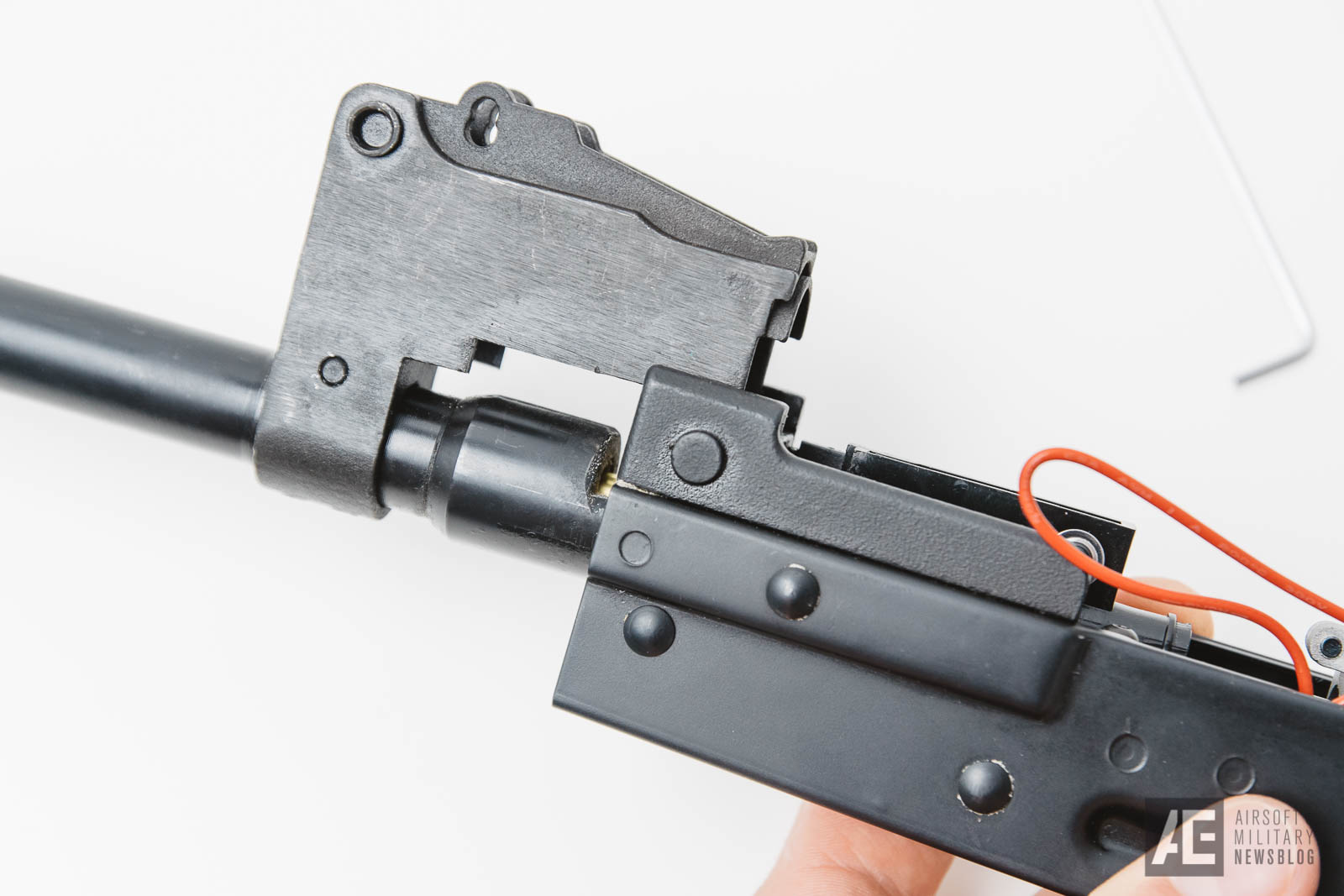 Liebe Hersteller: bis jetzt hat es genau einer eurer Mitstreiter geschafft, den Rear Sight Block entsprechend groß zu dimensionieren, so dass auch andere Akkus als die klassischen “Stick Types” passen. Der Rear Sight Block hat mehr als genug “Fleisch”, um den Durchmesser etwas größer machen zu können. Noch dazu kann man vom Receiver auch etwas Material abtragen, was dem Akku zusätzlichen Platz schaffen würde.