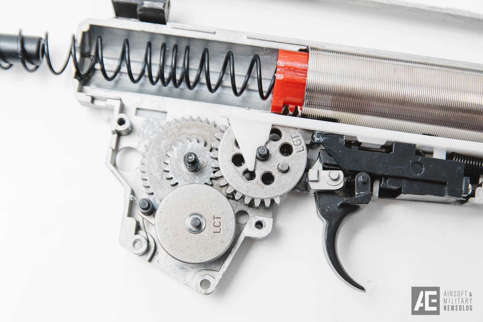 LCT hat die Gearbox im Vergleich zur 100er AK Serie noch etwas verbessert. Das Material der Shell sieht wesentlich besser aus und die Gearbox verhält sich im Allgemeinen etwas anders – sie klingt sauberer, die Gears haben ein akzeptables Shimming und die Kompression den Cylinders ist absolut perfekt.
