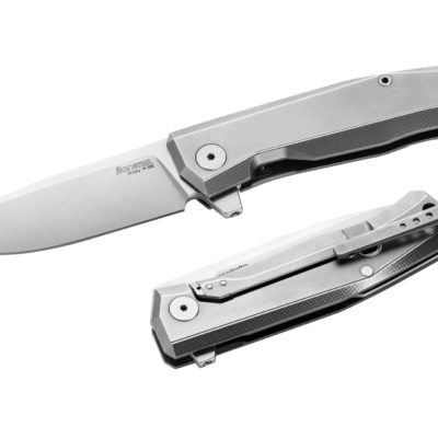 it features a satin finished M390 sintered steel blade equipped with the “ReF” (Removable Flipper system) and a Double Crown ball bearing system which keeps the blade more steady and provides a smoother movement.Its folder have a titanium SOLID® clip screwed to the titanium frame by a tungsten carbide glass-breaker.