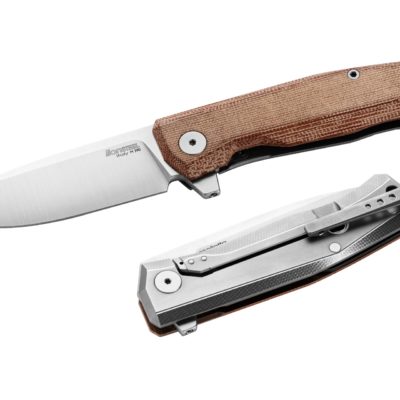 The Myto is available in many variations. Double milled titanium handle in three colors with titanium spacer (grey, blue and bronze). Whole “Old Black” (PVD coated then stonewashed) blade, body, spacer and clip. Carbon fiber handle with titanium spacer and Canvas handle in three different colors (natural, green and black) with black G10 spacer.