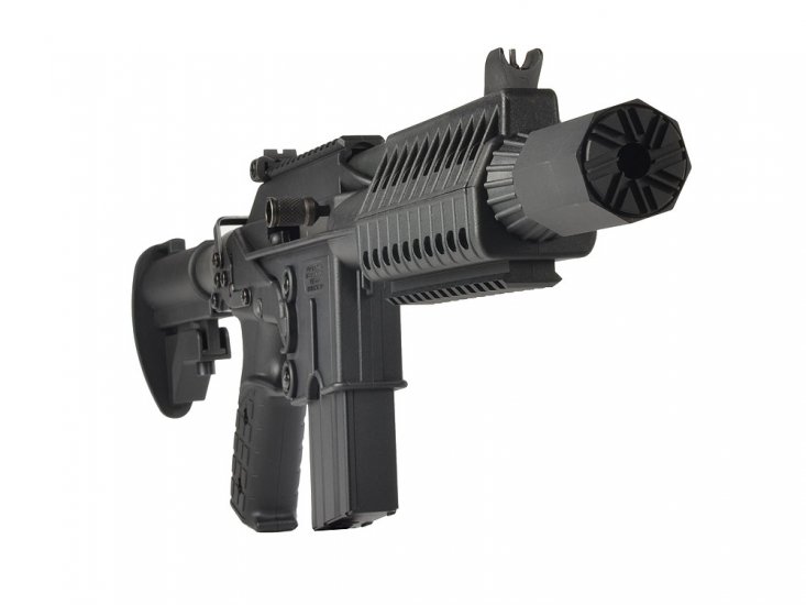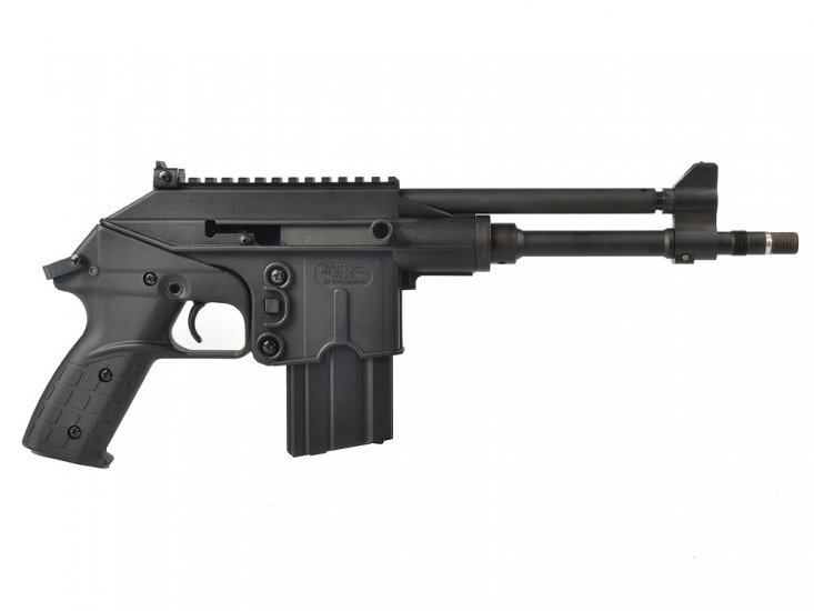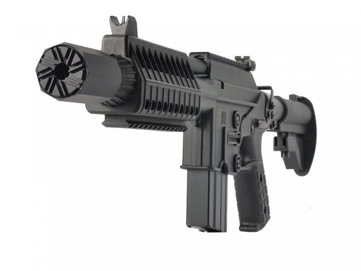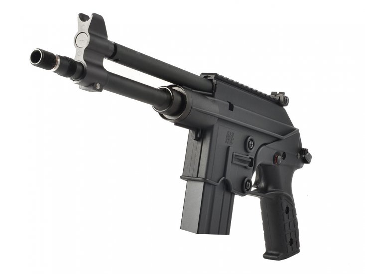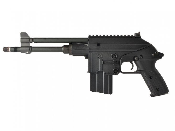 The polymer handguard is included. You can choose to attach the handguard to be traditional style pistol or leave it open to have a slick looking pistol. By adding up the stock adapter (Optional, purchase separately), it can also convert from pistol style to rifle style. Socom Gear Keltec PLR-16 features realist strong recoil, light weight enhanced polymer construction and WE AR/M4 magazine compatible.