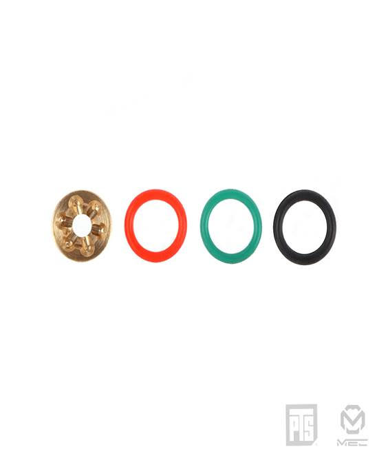 The MEC R-Type piston head for Tokyo Marui / KWA pistol GBB is an improvement over the stock one that comes with the pistol. This particular revolver’s cylinder-front-view design brass piston head equipped with a 6-hole air intake in order to improve the airtightness and air sealing with the included O-ring (including 3 size of O-ring: red, black and green).