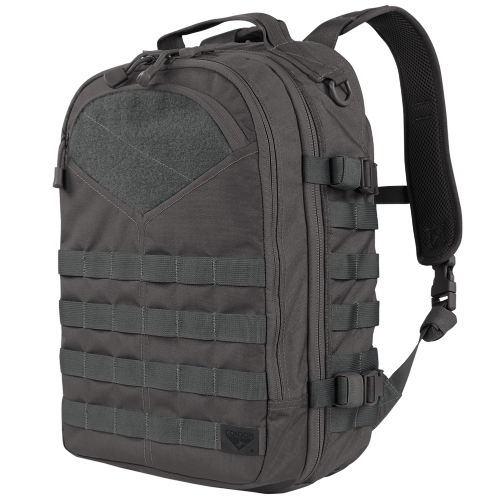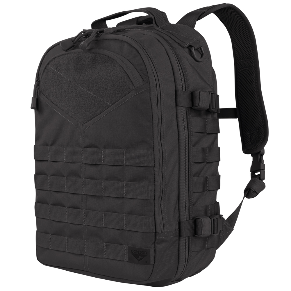 Constructed of Mil-Spec 500 Denier Cordura, Condor Frontier Outdoor Pack comes with a spacious main compartment with laptop sleeve, large front admin compartment, and hydration pocket at the back, Air-Flow back system and Airmesh padded shoulder straps, removable quick release waist belt, RhinoSkin strengthened bottom and drag handle, and sturdy MOLLE webbing.
