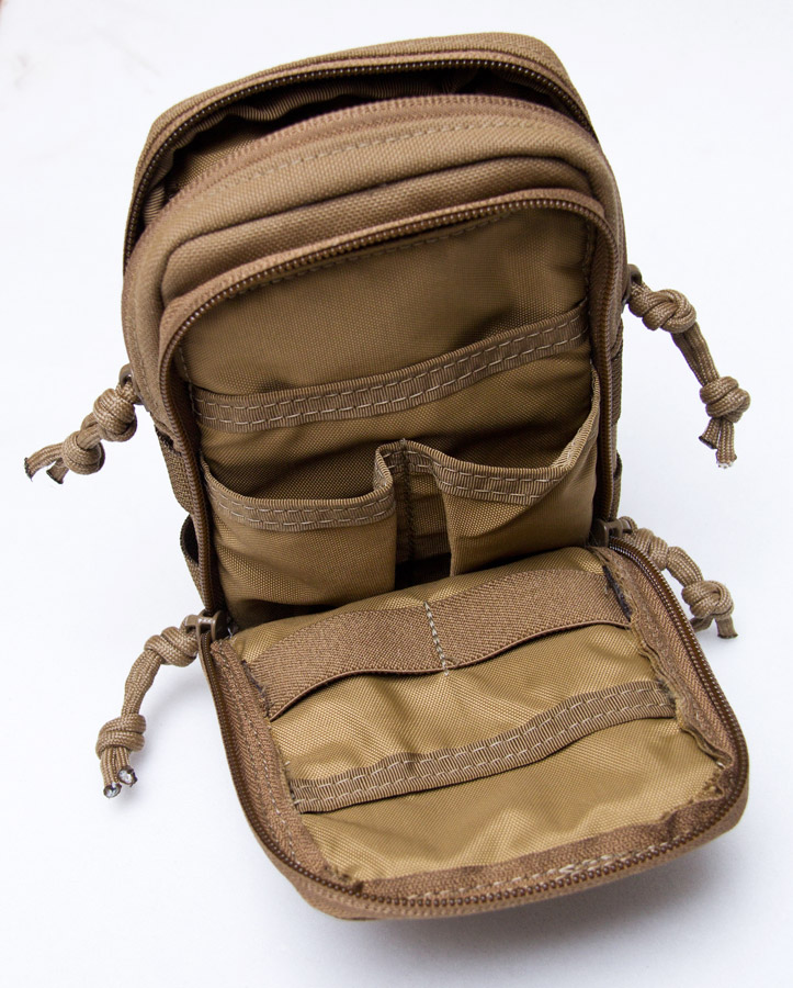 For the interior we settled down on the elastic and switched them out for billowed pockets for a good balance of flexibility and ease of item insertion. Between the sleeve pockets, billowed pockets, main compartment, and elastic, the user has many options for immediate ease of stashing vs holding security. The main compartment opens with double zippers just enough to get good item access while the frontal compartment opens up near clam shell style for improved access while not having all your items spill out either.