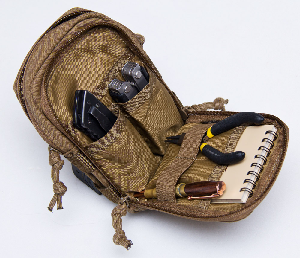 This is our Compact variant based on the original Stealth admin pouch. Coming in at about 2/3rds the width it allows for some more mounting options while still being a great organizer for multitool sized items such as: medium sized flashlights, folding knives, pistol magazines, and similar tools.
