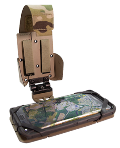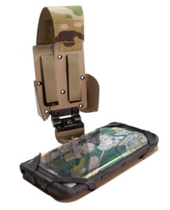 The NAVBOARD™ ROTARY allows users to attach a wide range of consumer electronic navigation devices with or without a protective case. It can be stowed close to the user’s body, and deployed in an open position and viewed in either a vertical or horizontal configuration. When stowed in vertical position the NAVBOARD™ ROTARY only uses two columns and 3 rows of webbing.