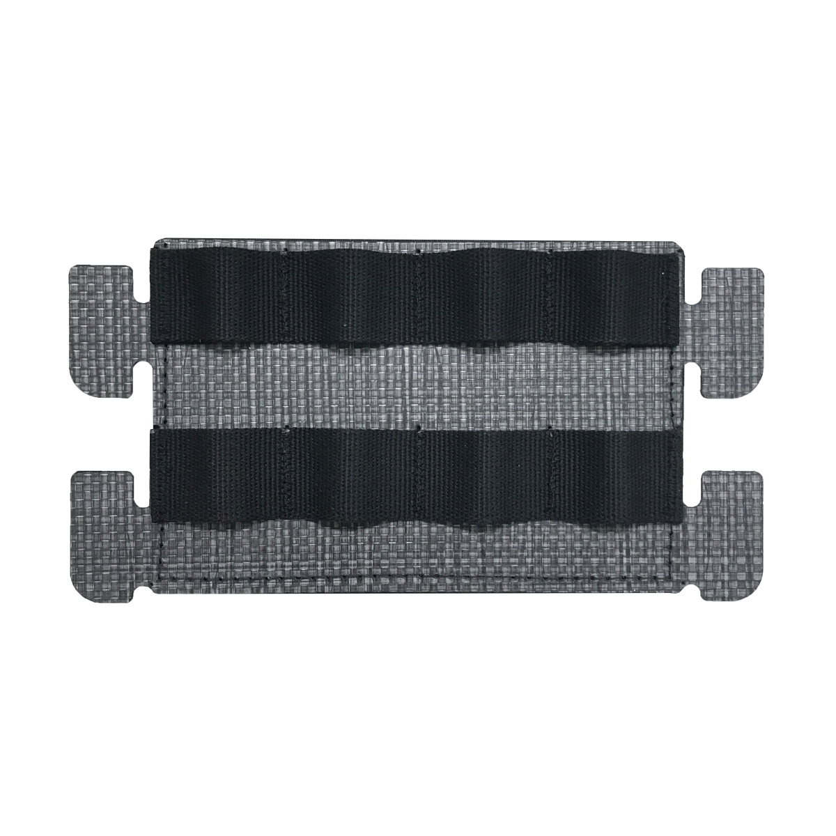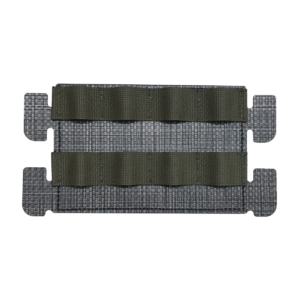 It is made up of a thermoplastic composite that offers a safe and rigid MOLLE platform. The panel mounts with hook velcro and the wing tabs tuck into the laser slots on the chest to secure the corners.