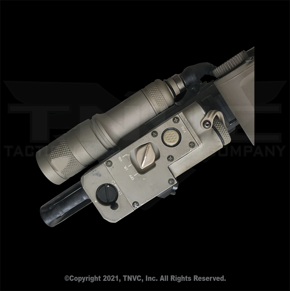 The low profile, one-piece body design closely hugs the CQBL-1, giving users a complete IR/VIS Aiming Laser and integrated weapon light – when combined with a dual spectrum light like the Surefire M3xxV family, the ECHO Arms CQBL ILM gives the user complete IR AIM/ILLUM and VIS AIM/White Light capabilities in a compact package that is less than 4.5″ long, 6.3″ wide, and 1.4″ tall, making it ideal for PDW, SMG, and PCC applications where rail space and accessory mounting and integration space is extremely limited.