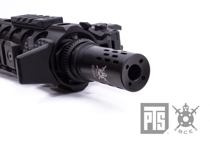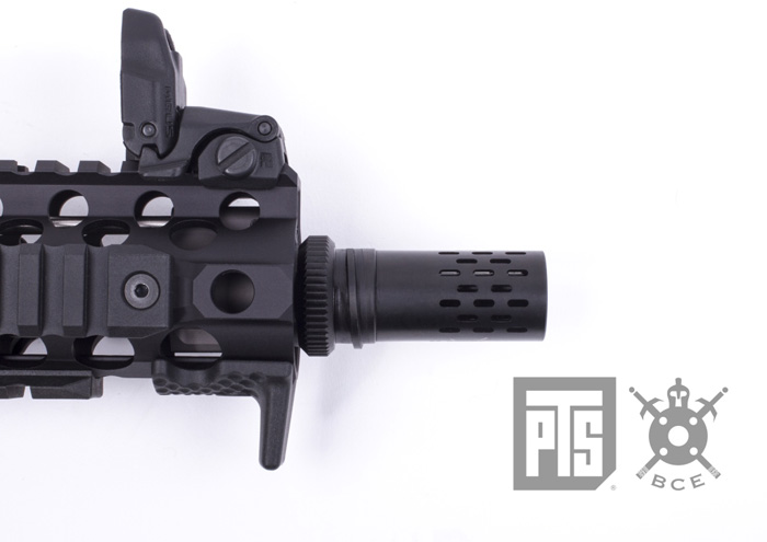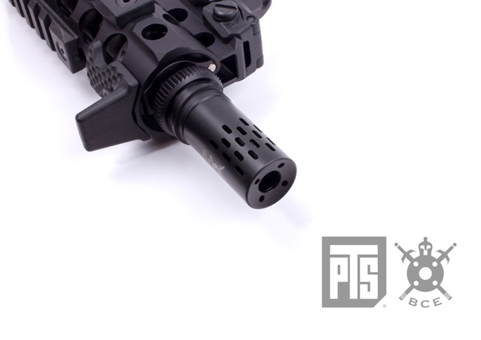The PTS Battlecomp 51.0 Flash Hider is the latest release and is designed to integrate with AAC 51T-compatible silencers. The PTS airsoft replica is available in clockwise and counter-clockwise 14mm threading and is compatible with the PTS AAC M4-2000 replica mock silencers.