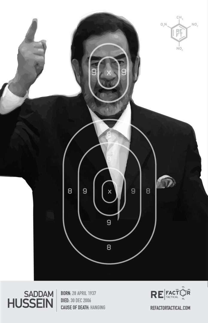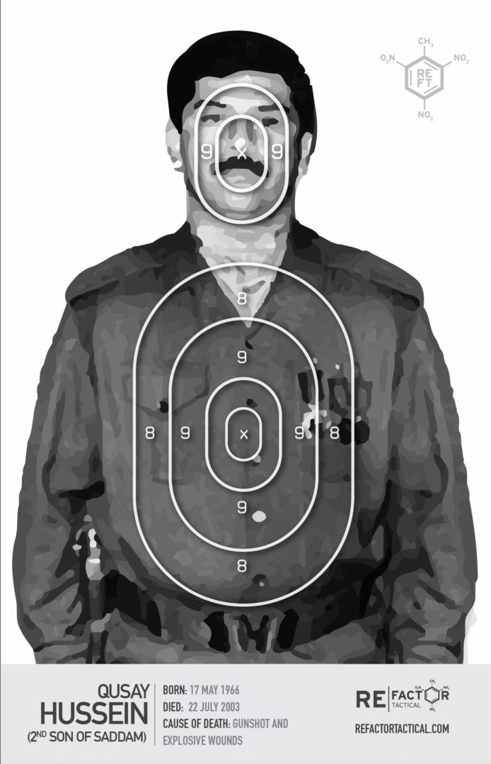 The Menace to Society Target Pack features our personal archive of the most loathed gang of dictators and terrorists from the 21st Century. Each 12Γ18β³ target includes the name, date of birth, date of death, and cause of death of the pictured scumbag. Our list of depraved includes Osama Bin Laden, Muammar Gaddafi, Saddam Hussein, Qusay Hussein, Uday Hussein, Fahd Al-Quso, Pablo Escobar, Adolf Hitler, Abu Bakr Al-Baghdadi, and ISIS/ISIL.