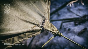 When using this tarp in a combination with the Be-X FronTier One poncho liner, you can stick your feet out and be on the move in seconds.