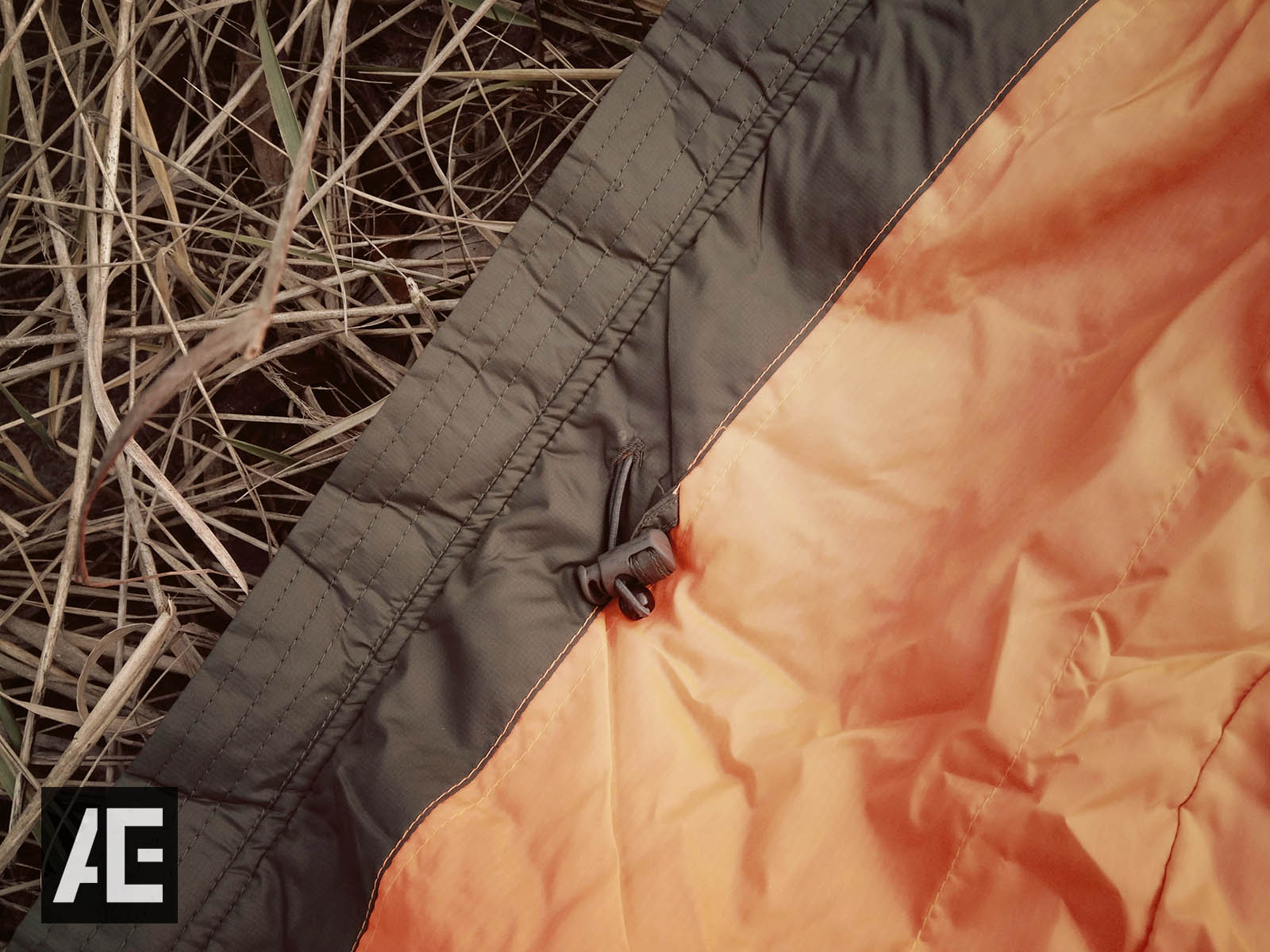 Die FronTier One Primaloft Kälteschutzjacke wird in einem kleinen Kompressionssack mit zwei Schnallen geliefert. Der Kompressionssack ist aus dem selben Außenmaterial wie die Jacke gefertigt, hat also auch ein Rip-Stop Gewebe und ist wasserabweisend. Durch die Schnallen oder dem Griff am Boden kann er auch einfach am Rucksack außen befestigt werden, um Platz zu sparen oder einen schnellen Zugriff zu ermöglichen. Die komplette Jacke mit Kompressionssack wiegt nur ca. 680g in der Größe Large.