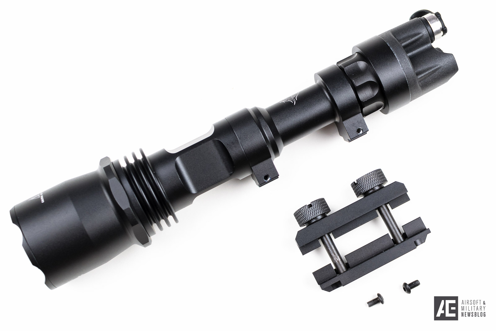 When inserting the batteries into the lamp, be sure to unscrew the lamp head and insert the batteries that way. Inserting them by removing the tail cap won’t work as the opening diameter is smaller. The rail mount can be removed by unscrewing two small hex screws. The M961 and the M620P share the same mounting system so, for example, offset-mounts can be used on both models.