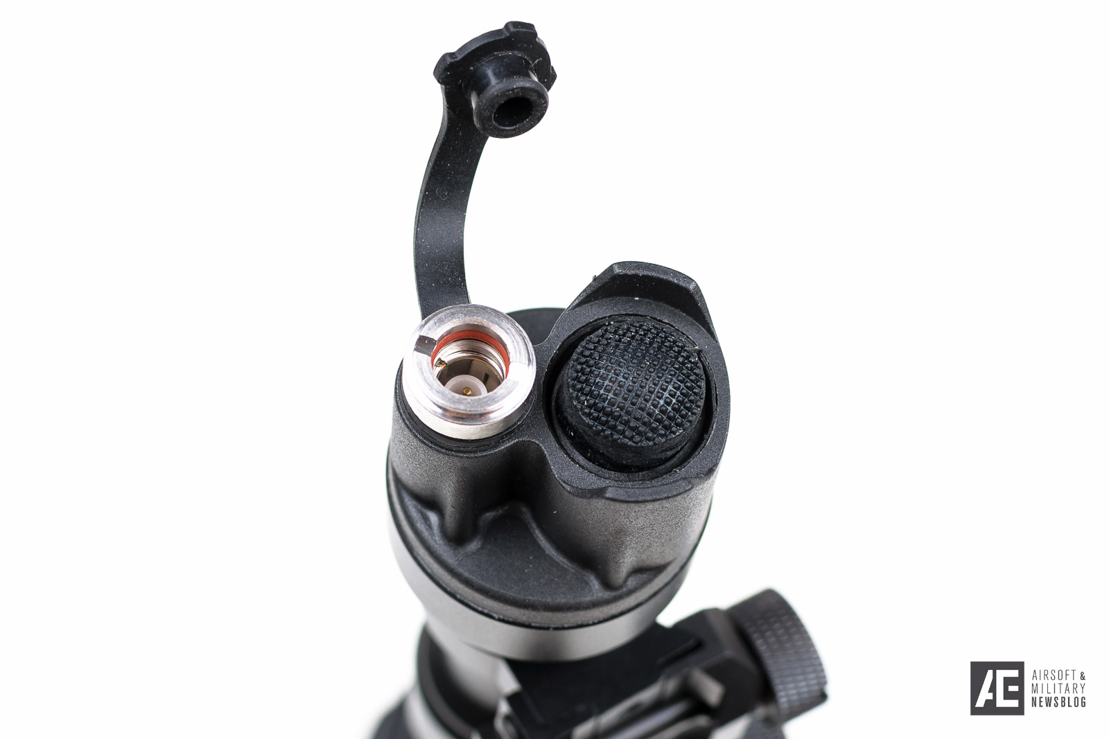 The remote switch gets connected via a simple plug-in connector whereas the Surefire model utilizes a threaded connection. The jack features an o-ring for better weather protection.