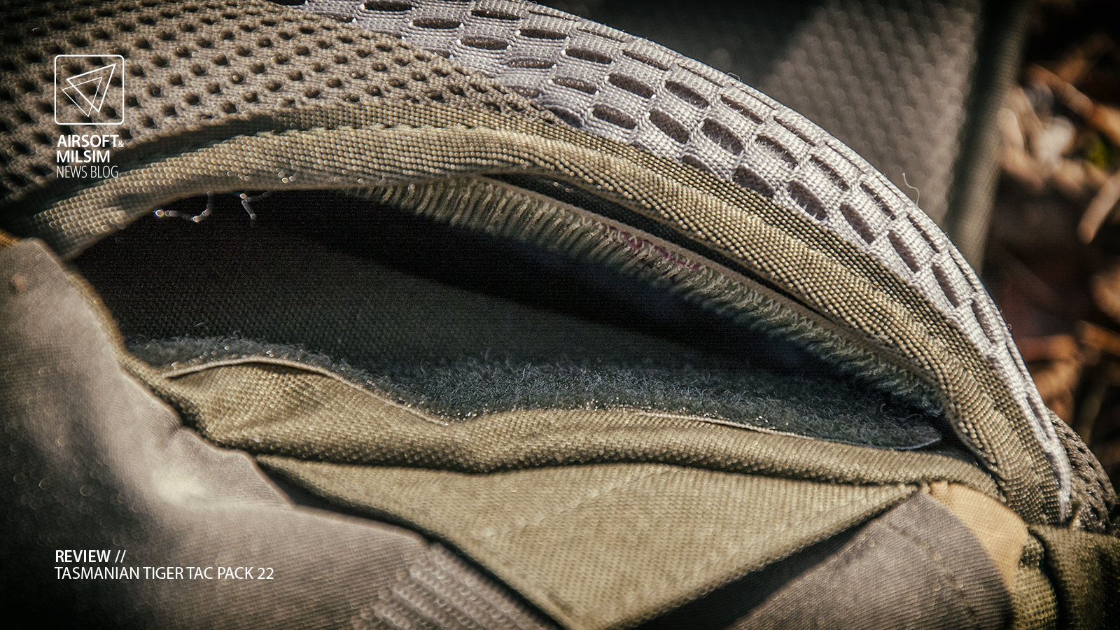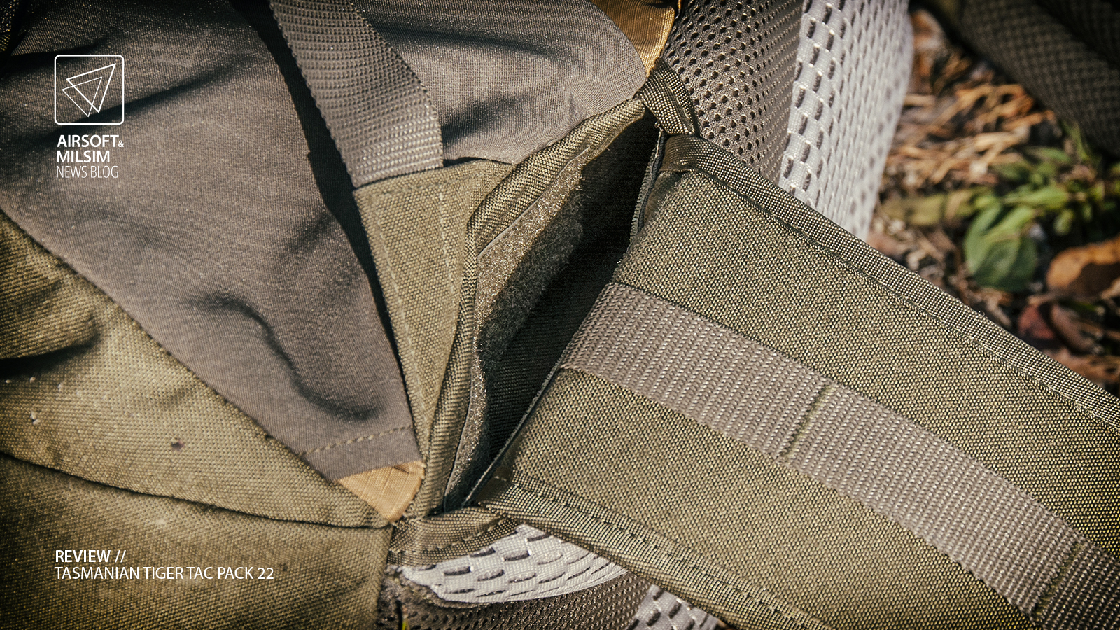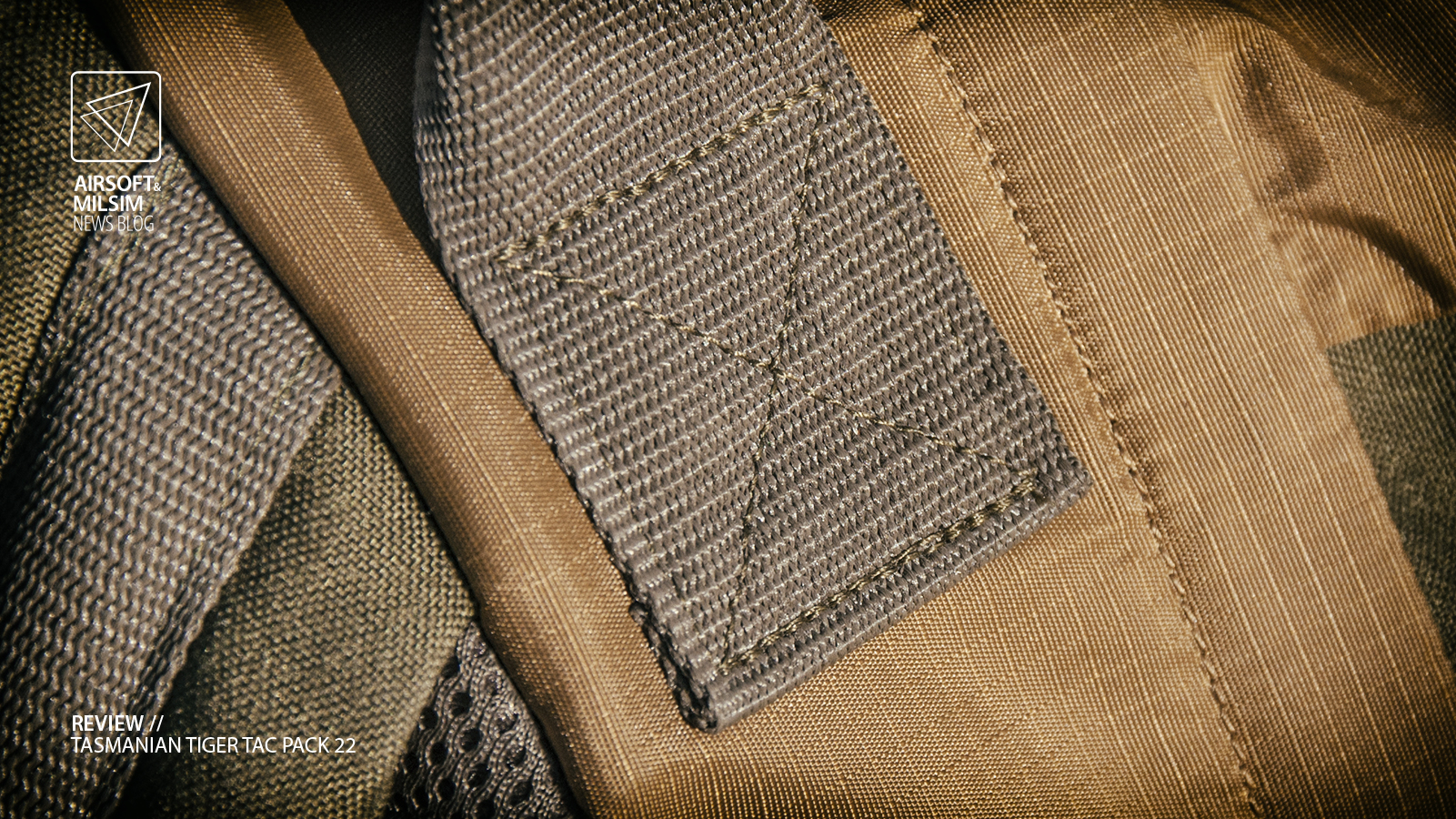 As a standard with Tasmanian Tiger, all their items are built with precision and attention to detail. All stress points are reinforced either with multiple stitching and/or even extra material. There are very little exposed seams. The lines where multiple pieces of fabric join together are sewn together and reinforced with a strip of soft webbing. This extends the lifetime of the product greatly, as with constant use these points get damaged quite often. No loose edges that could be a fraying problem are present. The only one is just from the reinforcement fabric for the hydration system tube exit. No potential for fraying as it’s hidden away inside the top construction.