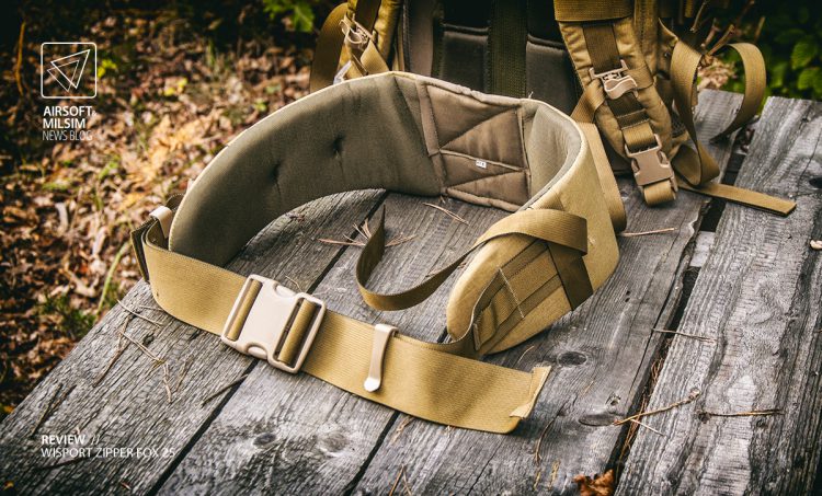 Starting at the bottom back, we have the hip belt. It’s nicely padded and removable. The liner is constructed from a 3d knitted mesh material which helps with air flow. Now one might say, that the belt construction and size is a bit of an overkill for a 25L backpack. But again, bare in mind that with all the straps and all, it can be loaded pretty well.