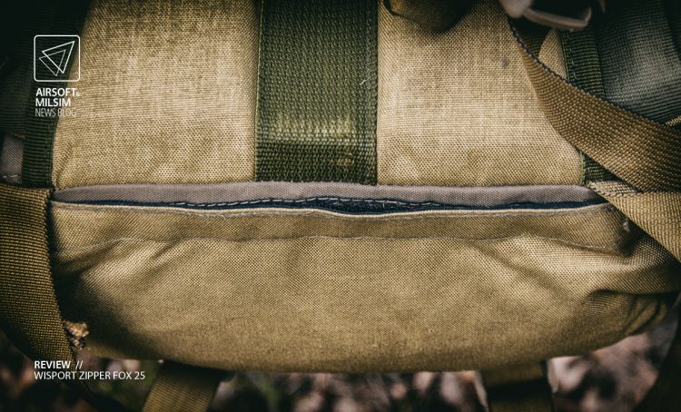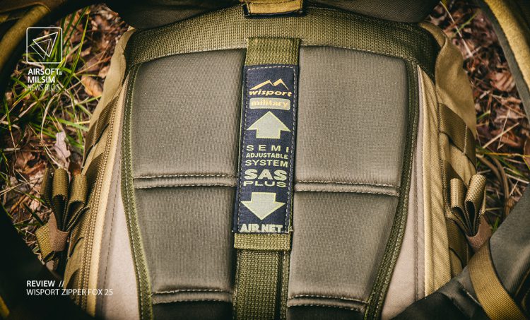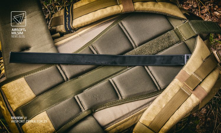 In the middle of the back, we can see a strip of webbing closed with velcro. It’s the cover for the SAS system, which probably stands for Semi Adjustable System. It’s basically just a long thin piece of aluminium which can be bent in a preferred shape.