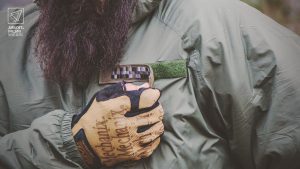 This lets me expose another great feature. The draw string is only located on the left. With this design, the jacket makes holstered belt carry of pistols even safer. There have been countless reports of draw strings getting caught and stuck between the holster and the firearm. A great solution. Sorry lefties. But there is a catch we can all benefit from. Since the draw string is just on one side, this makes putting on the anorak in the dark very reliably fast. Just feel the string with your left hand and pull the jacket over. You can be sure, it’s turned the right way.
