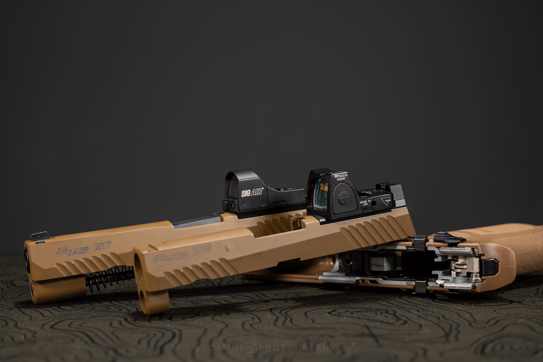 Starting with the GK Tactical RMR Mount first, it is designed to give the SIG AIR P320 M17/M18 the ability to use red dot sights that are not from SIG itself. Meaning, RMRs like the one we have in use from Trijicon or those who use the same type of drill holes to fit on the mount plate.