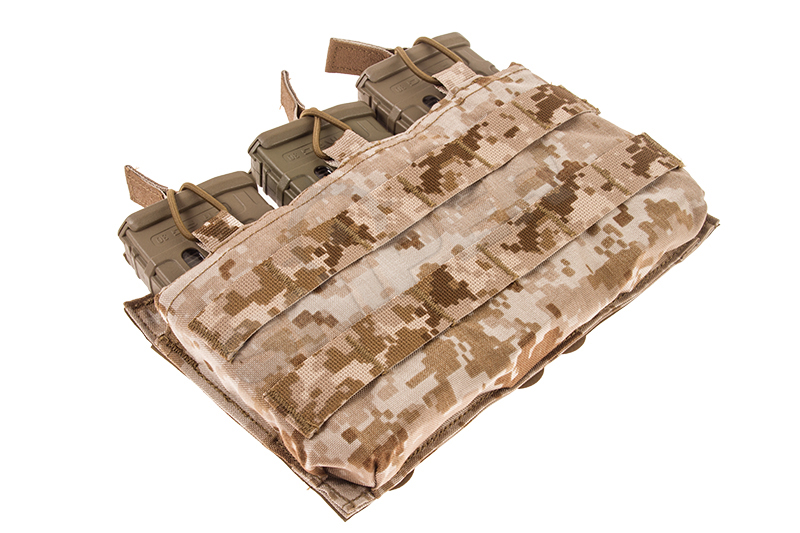 The chest rig is designed to carry three 7.62mm magazines (POF, SR25, M110, DPMS, FN, SCAR H or similar sized) or 7.62×39 magazines (AK-47 or AKMs) in an integral pouch with an adjustable shock cord retention system closure.