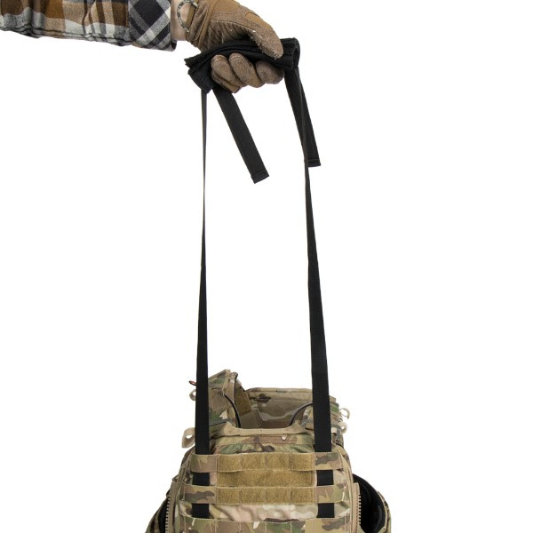 This prevents the plate carrier from striking them in face, or cutting off their airway. Because the strap deploys to a greater length it allows the operator performing the evacuation to stand straight up which prevents fatigue and helps maintain situational awareness.