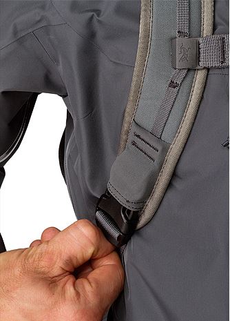 - Hydration ports at top of shoulders, on side pockets