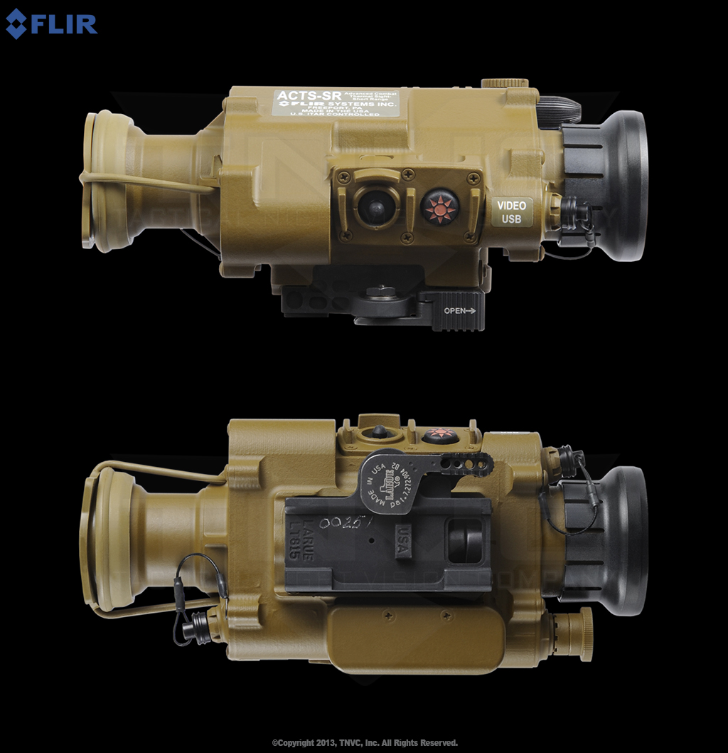The FLIR T70 Advanced Combat Thermal Sight – Short Range (ACTS-SR) is an uncooled thermal clip-on weapon sight with a low, in-line opto-mechanical profile suitable for modern weaponry with flip-down or removable front sight posts. The ACTS-SR has been specifically designed and optimized for weapons utilizing the NATO 5.56x45mm and 7.62x51mm rounds with an approximate 500 meter range. The size and weight make it ideal for tactical small arms such as the FN SCAR-MK16/17, M4/M16, SR25, and other 5.56/7.62 platforms.