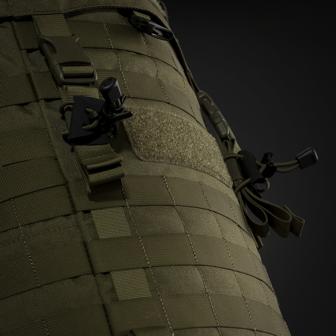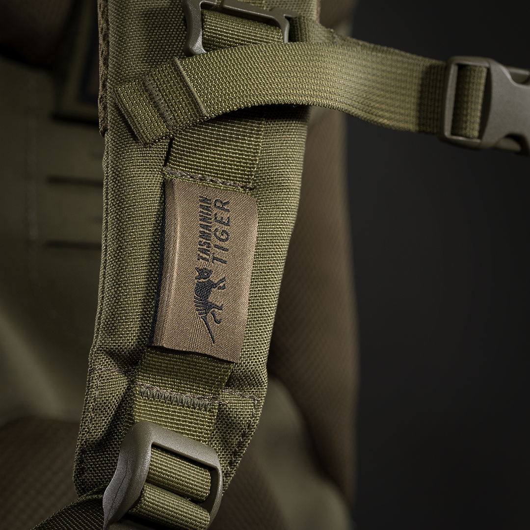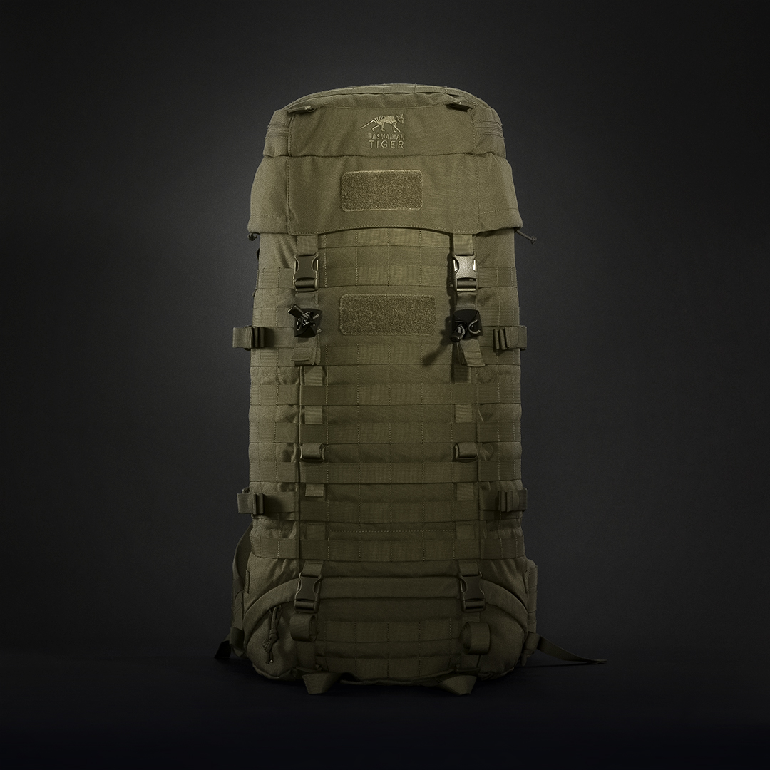The TT Base Pack 52 features MOLLE loops on the front, sides, lid and hip belt. This allows various extensions by additional pockets, i. e., by the new TT Tac Pouch 15 BSP Set.
