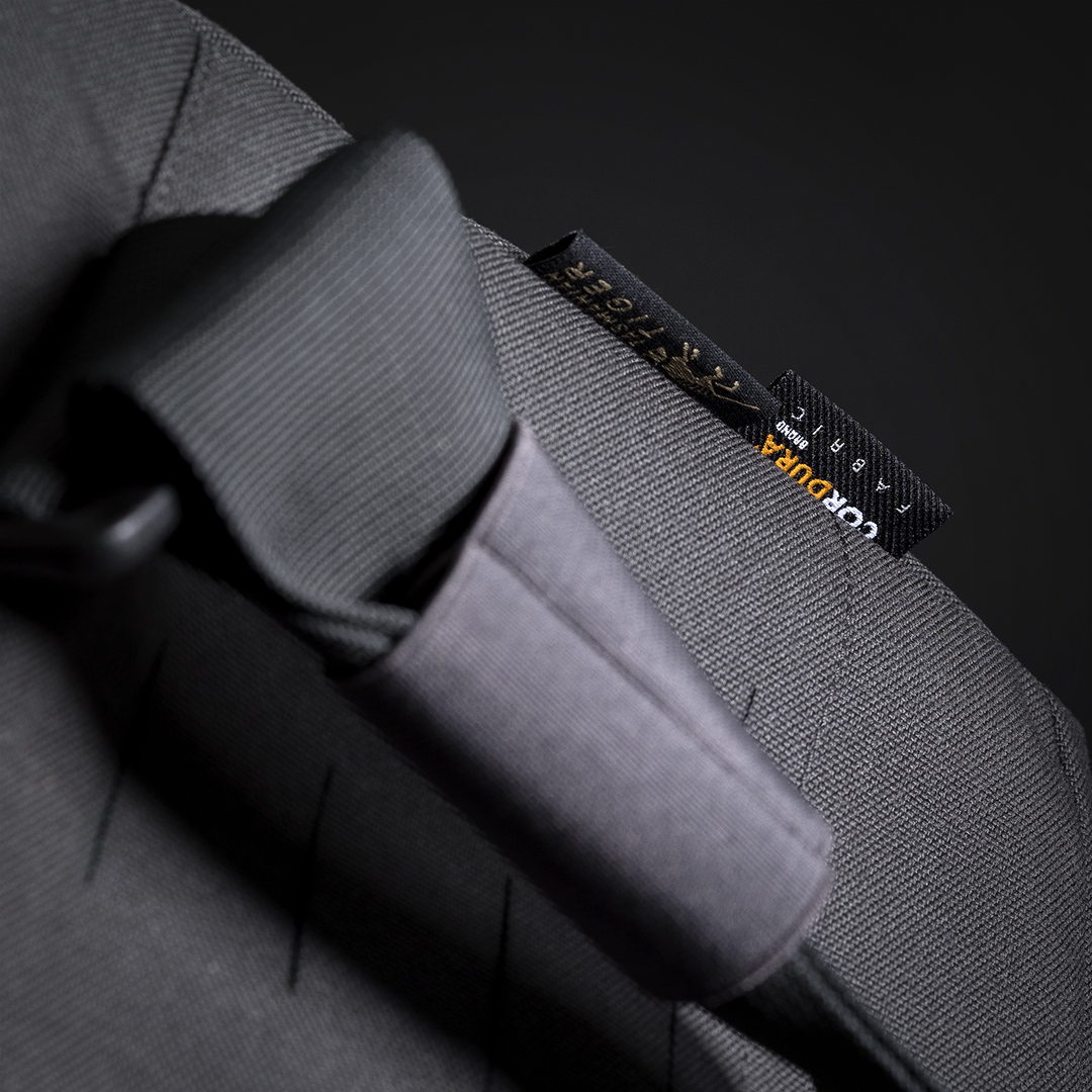 The separate, width-adjustable laptop compartment can also be used as a weapons compartment. The flap is secured with hook-and-loop and quick-release fasteners.