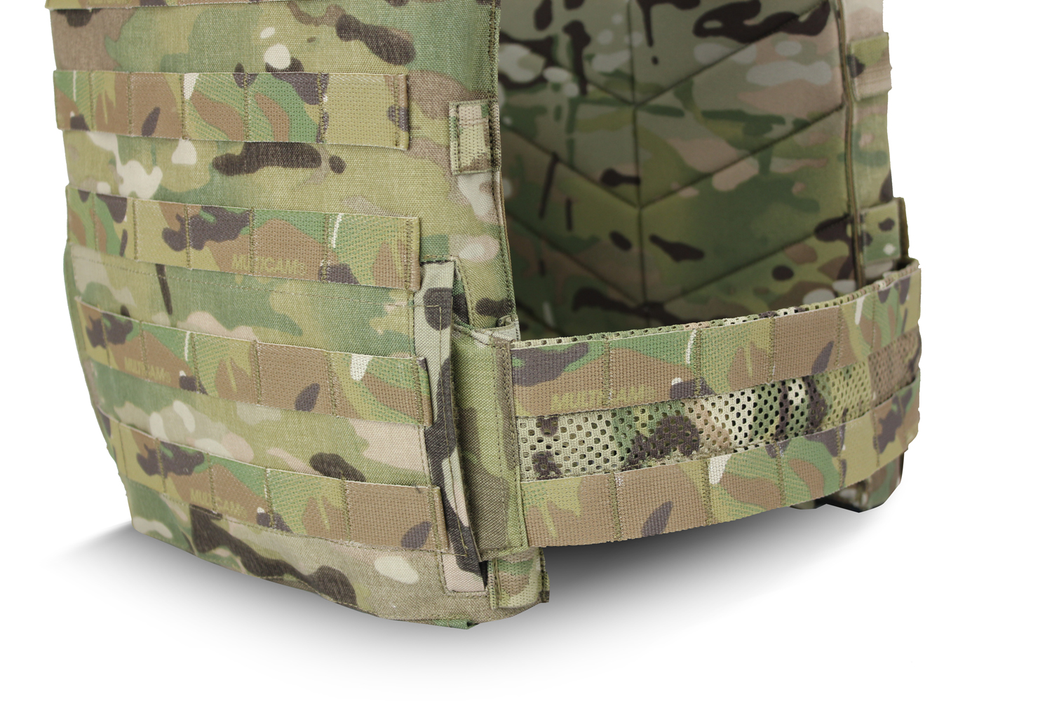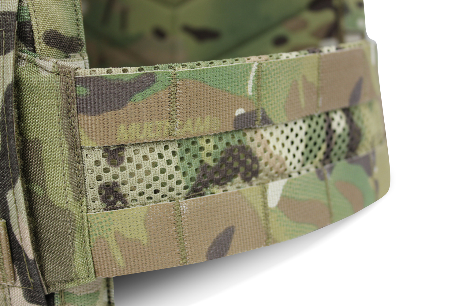 • The circumference of the New Mesh Base Cummerbund incorporates poly mesh which quickens dry time in both arid and humid climates. It also allows excess heat to vent, further decreasing dry time. It also has two rows of MOLLE/PALS webbing to attach pouches.