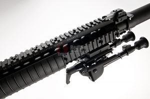 The airsoft version from VFC is fully constructed in metal with a Knights Armament SR25 quad rail in the front, polymer stock and pistol grip like the real one. This is a gun you shall not miss. The VFC SR25 GBB is a gas blowback system that is an enlargered version of the VFC M4/ Umarex HK416 GBB system and has its own proprietary 20 round magazine.